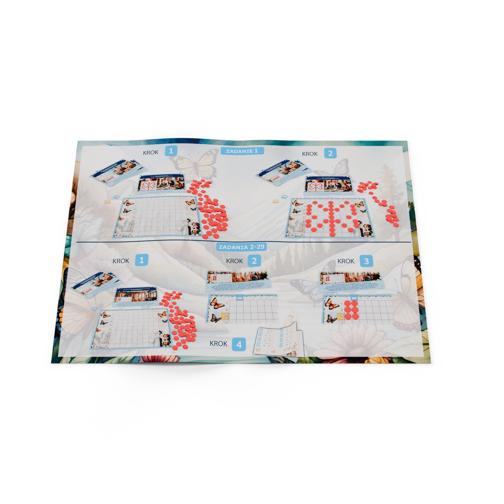 Nauka mnożenia staje się łatwiejsza, gdy dzieci mogą działać na konkretach. Zestaw zawiera karty z historią, żetony, planszę oraz karty pracy do zapisywania działań. Dzięki temu dzieci nie tylko poznają mechanizm mnożenia, ale także mogą manipulować elementami, układać działania i samodzielnie odkrywać matematyczne zależności.